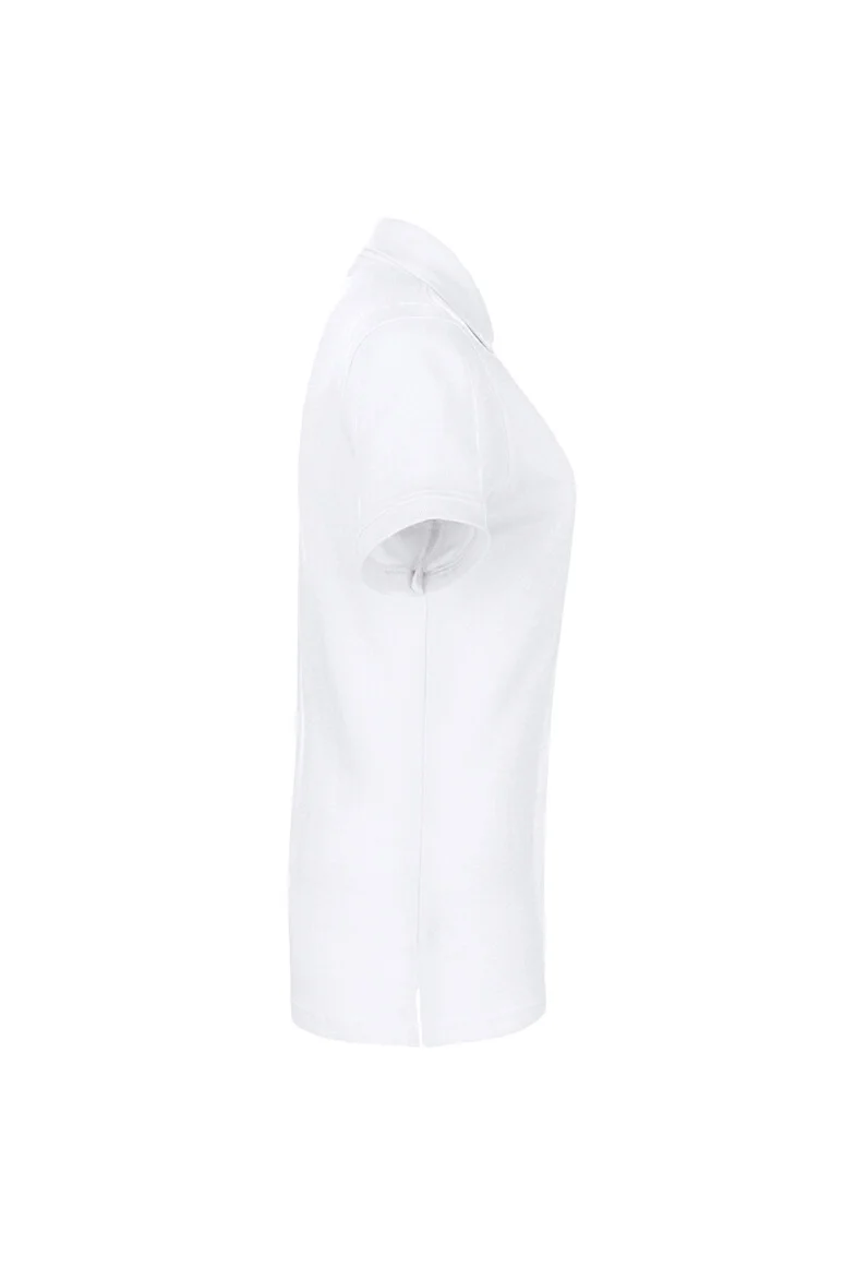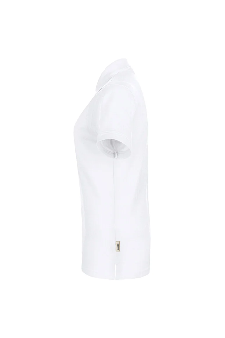 Klassisches Poloshirt für Damen, mit modisch schmaler, hochwertig verarbeiteter 4-Loch-Knopfleiste mit extra haltbar angenähten, bruchsicheren Knöpfen, Ton in Ton mit gelasertem HAKRO Schriftzug. Mit Ersatzknopf, Nackenband und doppelt geriegelten Seitenschlitzen. Hergestellt aus feinmaschigem Piqué aus langstapeliger, gekämmter und ringgesponnener CmiA-Baumwolle. Gewebtes HAKRO Necklabel aus hochwertigem Kettsatin mit weichen, ultraschallgeschnittenen Bandkanten für angenehmen Tragekomfort und gewebtes HAKRO Flaglabel an der linken Seitennaht.